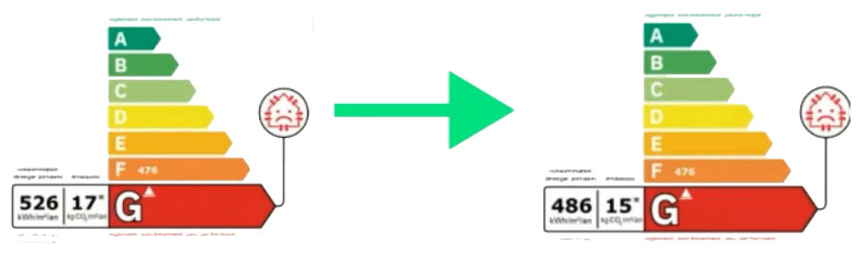 • L’étiquette GES (à droite) influe sur l’étiquette des consommations (à gauche)