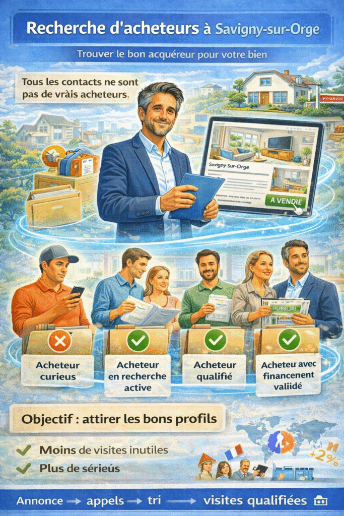 C’est un point essentiel dans toute stratégie de vente, car de nombreux vendeurs perdent du temps avec des contacts peu sérieux, des visites peu qualifiées ou des acheteurs dont le financement n’est pas réellement sécurisé. À Savigny-sur-Orge, où les biens peuvent attirer des profils très différents, cette étape mérite une vraie sélection.